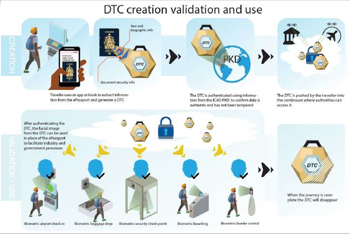 Digital Travel Credential là bản sao kỹ thuật số của hộ chiếu, được lưu trữ an toàn trên điện thoại của hành khách.